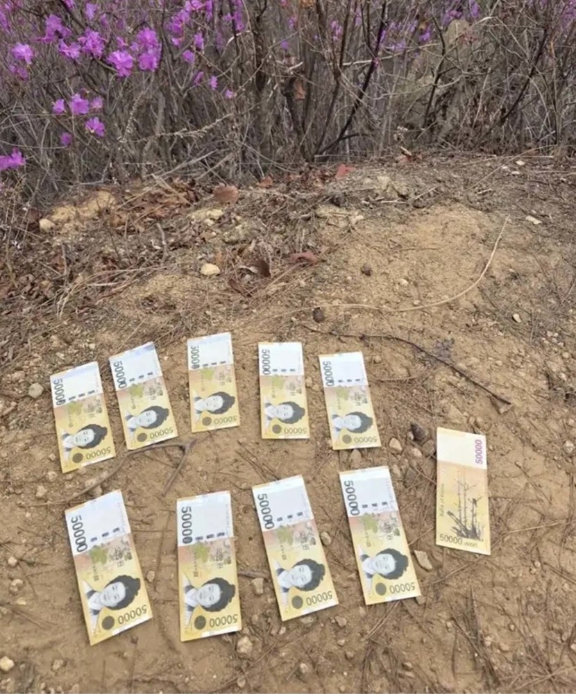 글쓴이가 공개한 사진에는 부산 동구 수정산에 있는 돌탑의 틈에 5만원권 지폐 여러 장이 비죽이 꽂혀 있는 모습이 담겼다. 총액은 50만원. 횡재라면 횡재였지만 글쓴이 머릿속은 복잡했다. 가져가도 되는지, 가져가면 탈이 나는지가 문제였다.