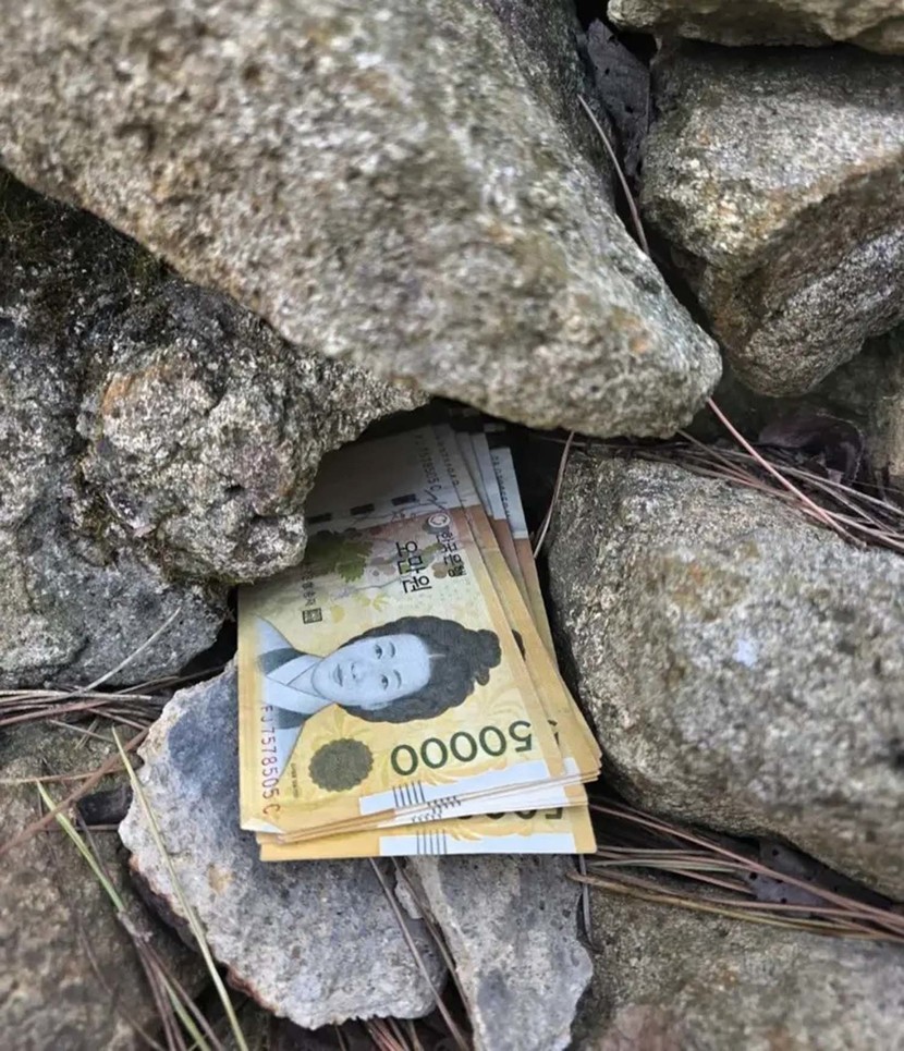 수정산 돌탑 틈 50만원 발견, 가져가도 되나 누리꾼 논란
