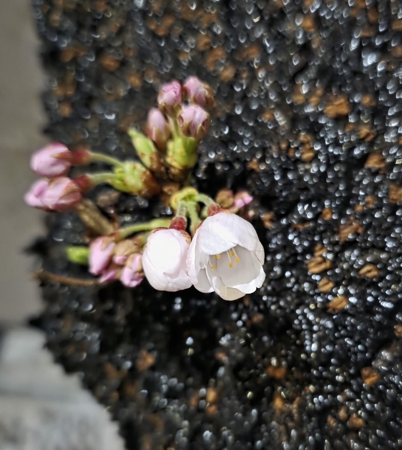 어제까지 봉우리였던 벚꽃이 피었고