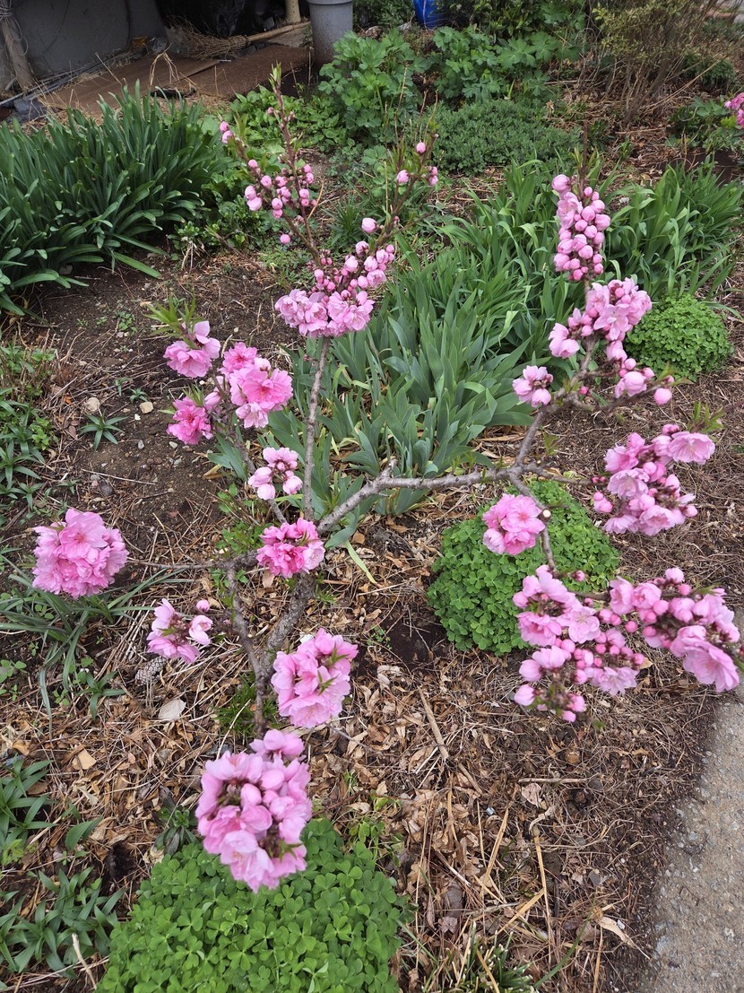 화단의 복사꽃