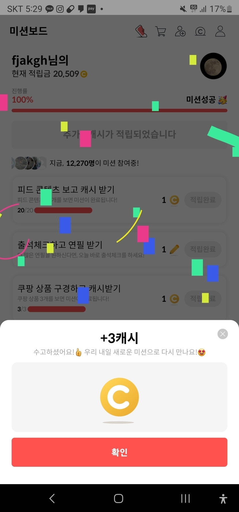 오늘 미션완료하고 3캐시네요ㅠㅠ