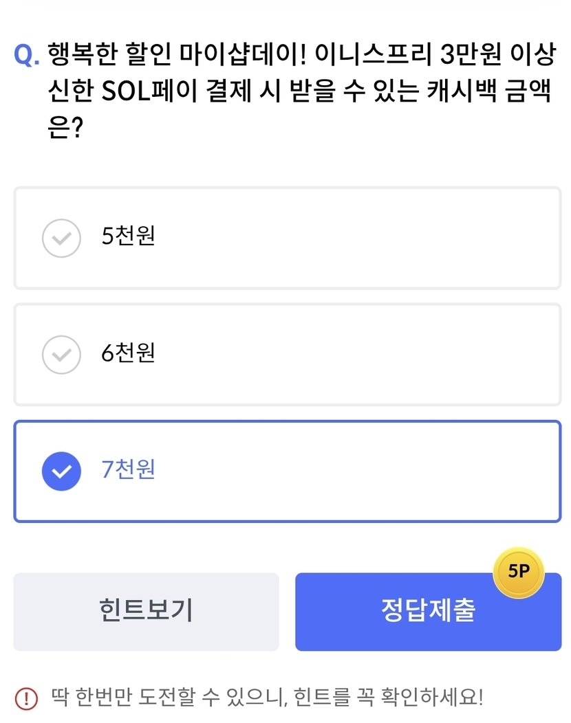 ์ ํ SOL PAY ํด์ฆํกํก ์ ๋ต : 7์ฒ์