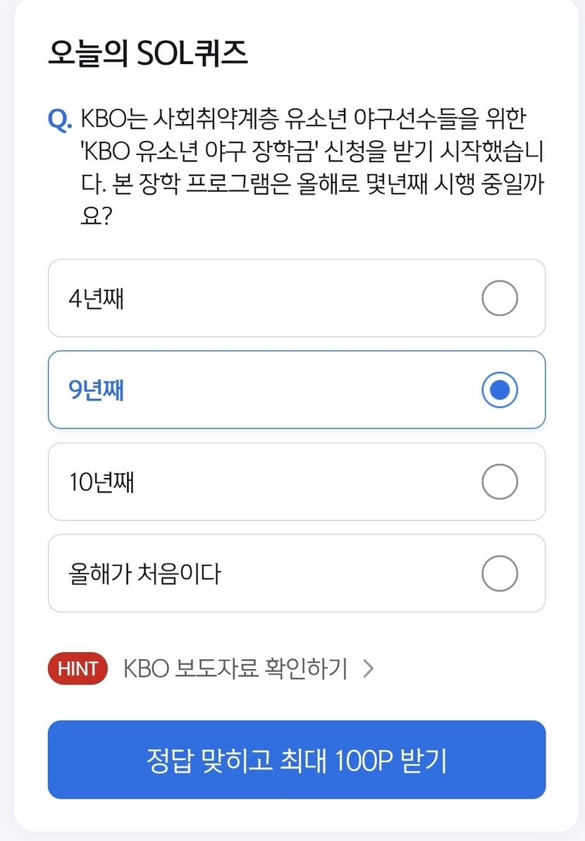 ์ ํ ์ ํด์ฆ ์ ๋ต : 9๋ ์งธ