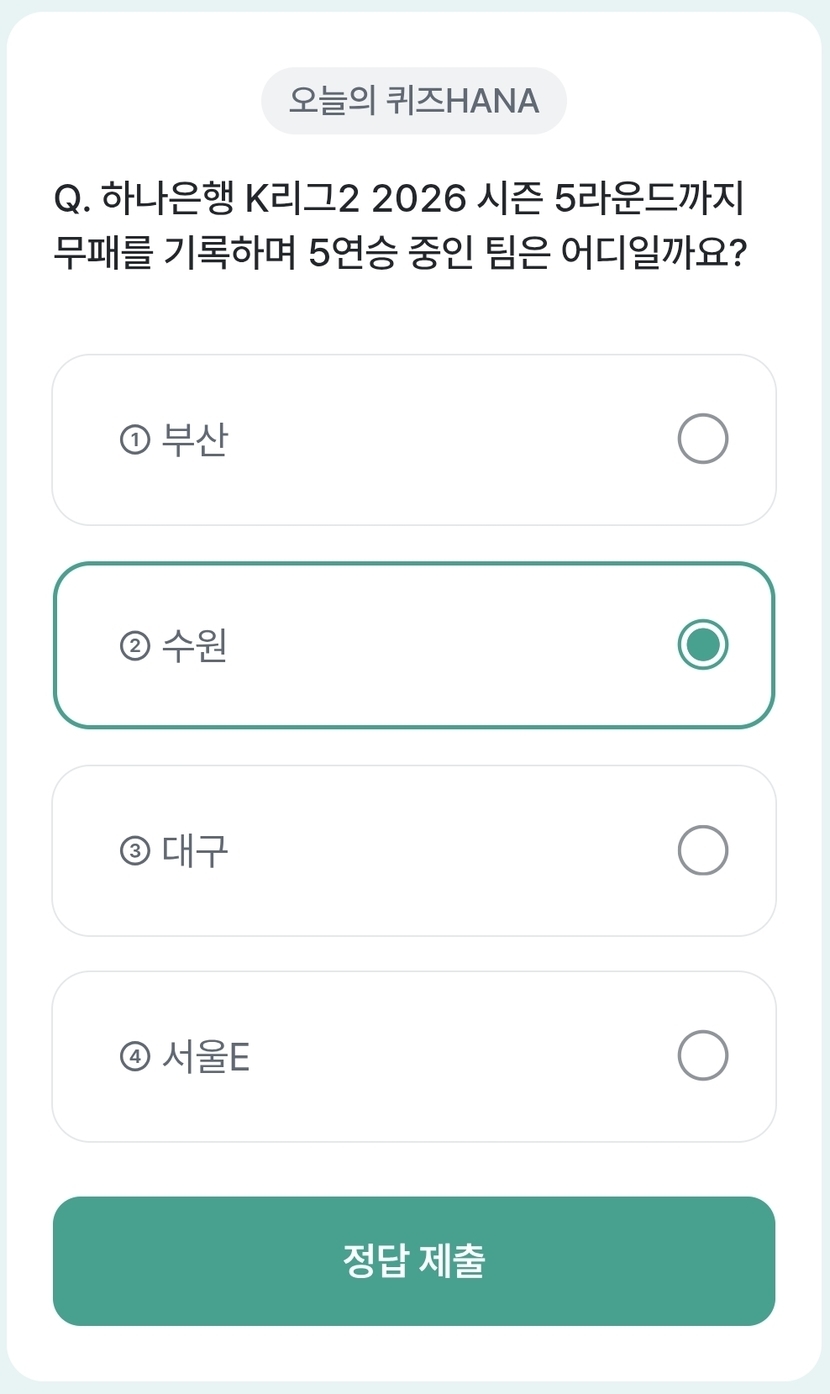 ๋งค์ผ๋งค์ผ ํด์ฆHANA์ ์์HANA ๋ชจ๋ ์ฐธ๊ฐํด๋ณด์ธ์.