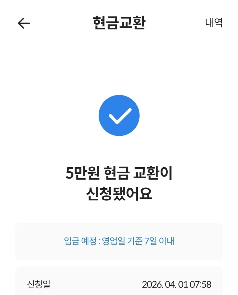 오늘 아침 현금교환 신청했어요