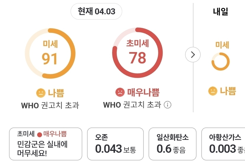 미세가 나쁨 이다보니