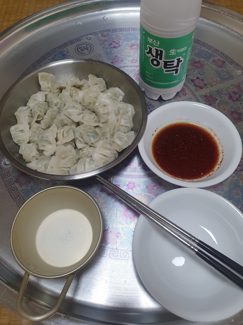 간단하게 물만두로 막걸리2병~