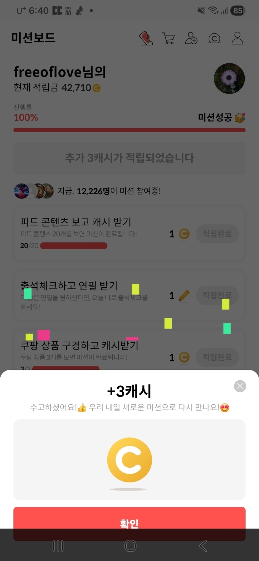 오늘의 미션완료 칭찬해~~~❤❤❤