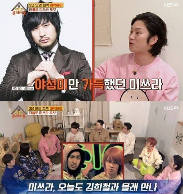 1983년생 동갑내기 절친인 두 사람은 과거 예쁘장했던 김희철과 야성미 넘치던 미쓰라의 극단적인 비주얼 조합 탓에 ‘둘이 사귀는 것 아니냐’는 황당한 열애설까지 돌았던 각별한 사이였죠.