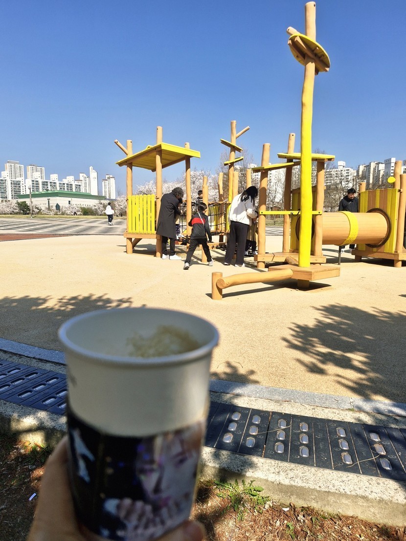 꽃도 보고 아이들 노는것도 보고