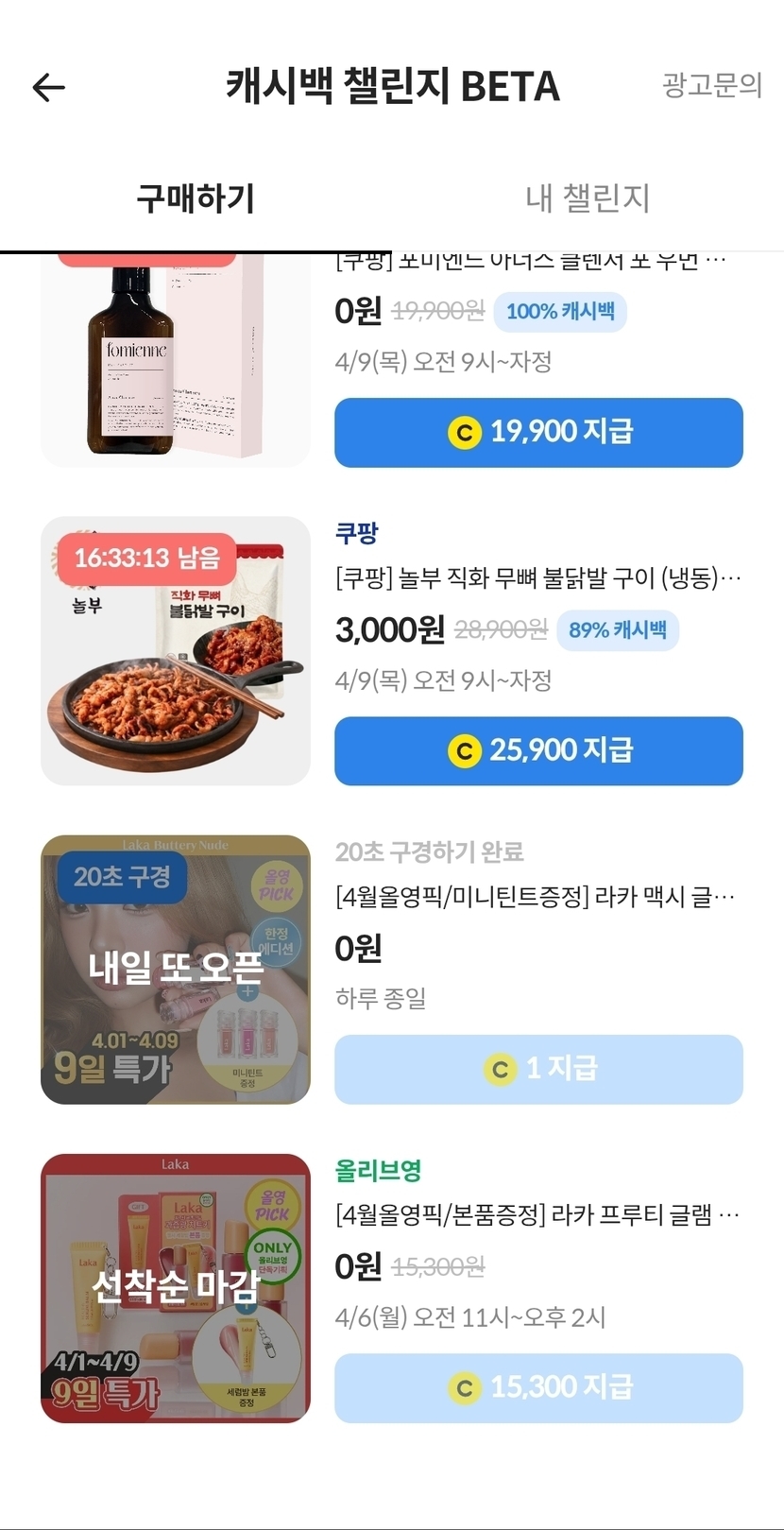 4/9 캐시백 챌린지