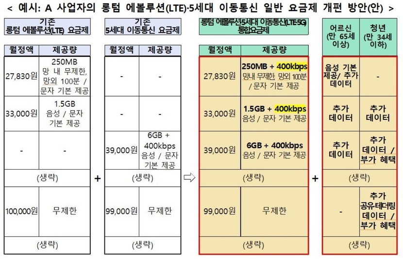 LTE 5G 통합 요금제 개편, 2만원대 안심 옵션 포함