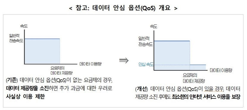 이 같은 변화의 핵심은 모든 LTE·5G 데이터 요금제에 ‘데이터 안심 옵션(QoS)’이 기본 포함된다는 점이다. 데이터 제공량을 모두 소진한 이후에도 일정 속도로 인터넷을 계속 사용할 수 있도록 하는 방식이다. 기존에는 추가 요금 부담 때문에 데이터 사용이 사실상 제한되는 경우가 많았지만, 앞으로는 메신저나 지도 검색 등 기본적인 서비스 이용은 유지된다. 정부는 이 조치로 약 717만 이용자가 혜택을 보고 연간 약 3200억 원 규모의 통신비 절감 효과를 기대하고 있다.