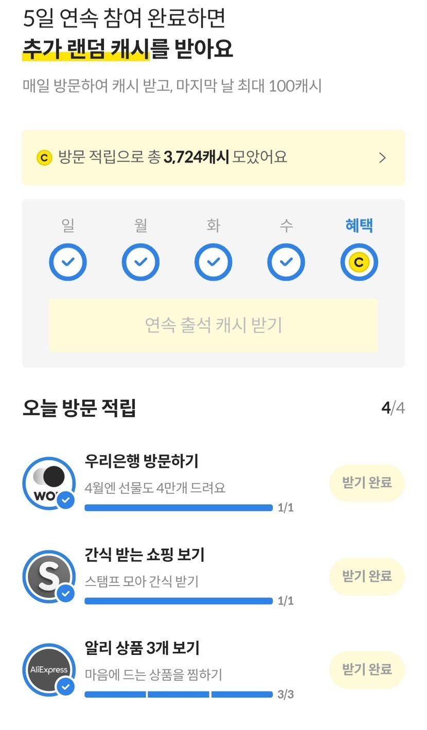 ♡♡5일 연속 램덤 &누적 캐시모음~(답방가요