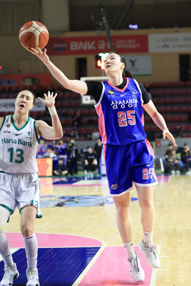 하나은행은 진안이 19득점 15리바운드로 분전했지만 팀의 패배로 빛이 바랬다. 정현은 3점포 4개를 꽂아넣으며 15득점을 기록했다. 이이지마 사키는 13득점 13리바운드를 올렸다.김아름./WKBL하나은행이 시작부터 맹공을 펼쳤다. 삼성생명이 강유림을 앞세워 리드를 잡았다. 삼성생명은 정현의 외곽포 2방으로 순식간에 점수 차를 좁혔다. 이어 김정은과 박소희의 3점으로 간극을 벌렸다. 삼성생명은 턴오버를 연발하며 하나은행에게 계속 기회를 헌납했다. 삼성생명은 야투율도 33%에 그쳤다. 1쿼터는 하나은행이 12-22로 리드를 잡았다.