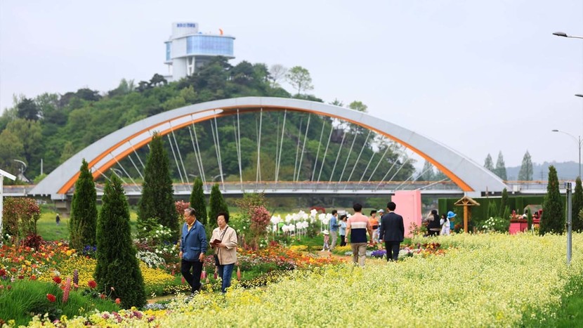 화순 꽃강길을 걸어본 사람이라면 안다. 하천을 따라 2.1km 남짓 이어지는 이 길이 얼마나 화사한지. 화순 봄꽃 축제는 안 그래도 예쁜 이 꽃강길을 벽라교부터 삼천교까지 약 6ha(약 1만8150평) 규모의 대형 꽃 단지로 탈바꿈시킨다. 유채꽃 500만 주가 한꺼번에 피어오르는 광경은 말로 설명하기보다 두 눈으로 확인하는 편이 낫다. 노란 물결이 하천 양쪽을 가득 메운 풍경, 화순의 봄이 이렇게 넓다.