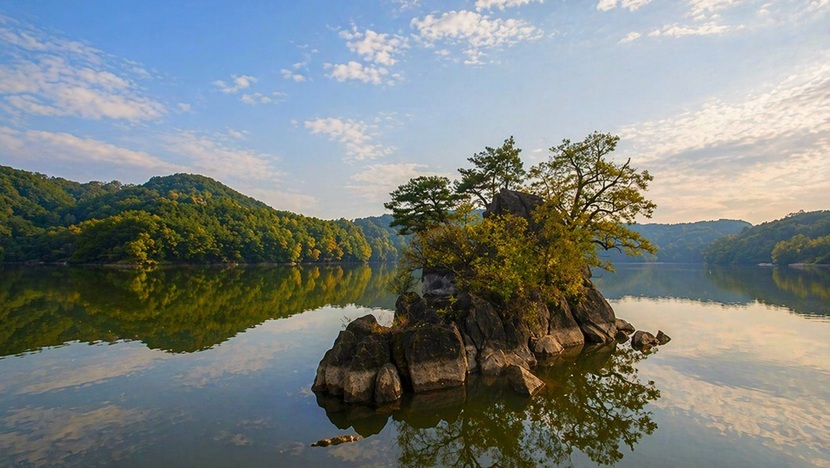 옥천 8경 부소담악, 대청호 위 700m 기암절벽 수묵화 비경
