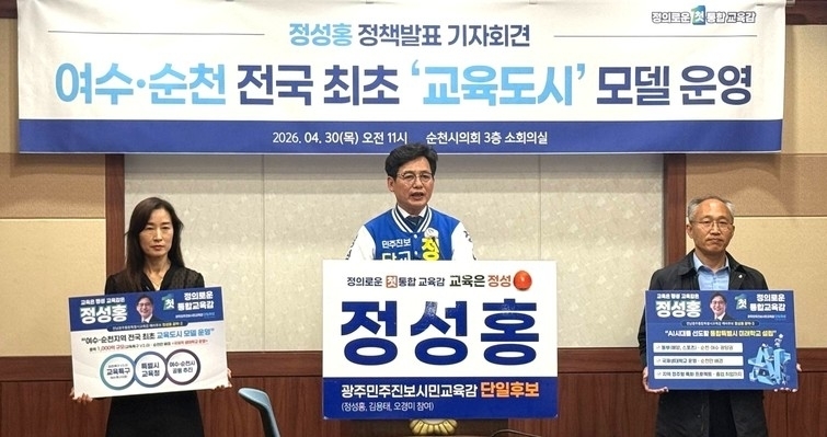 정성홍 전남광주통합특별시 교육감 예비후보가 여수·순천을 대한민국 최초의 ‘교육도시’로 육성하는 미래 교육 비전을 제시했다.