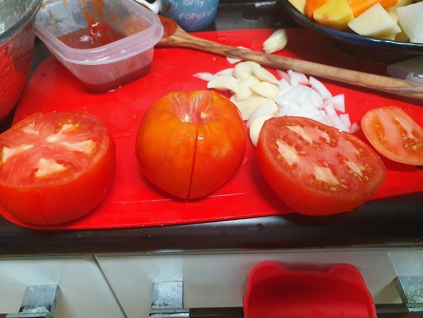 재료 : 토마토, 소고기, 마늘, 양파, 당근, 감자, 버섯(표고, 양송이 상관 없음), 버터, 밀가루, 설탕, 만능간장(없으면 그냥 간장), 케첩