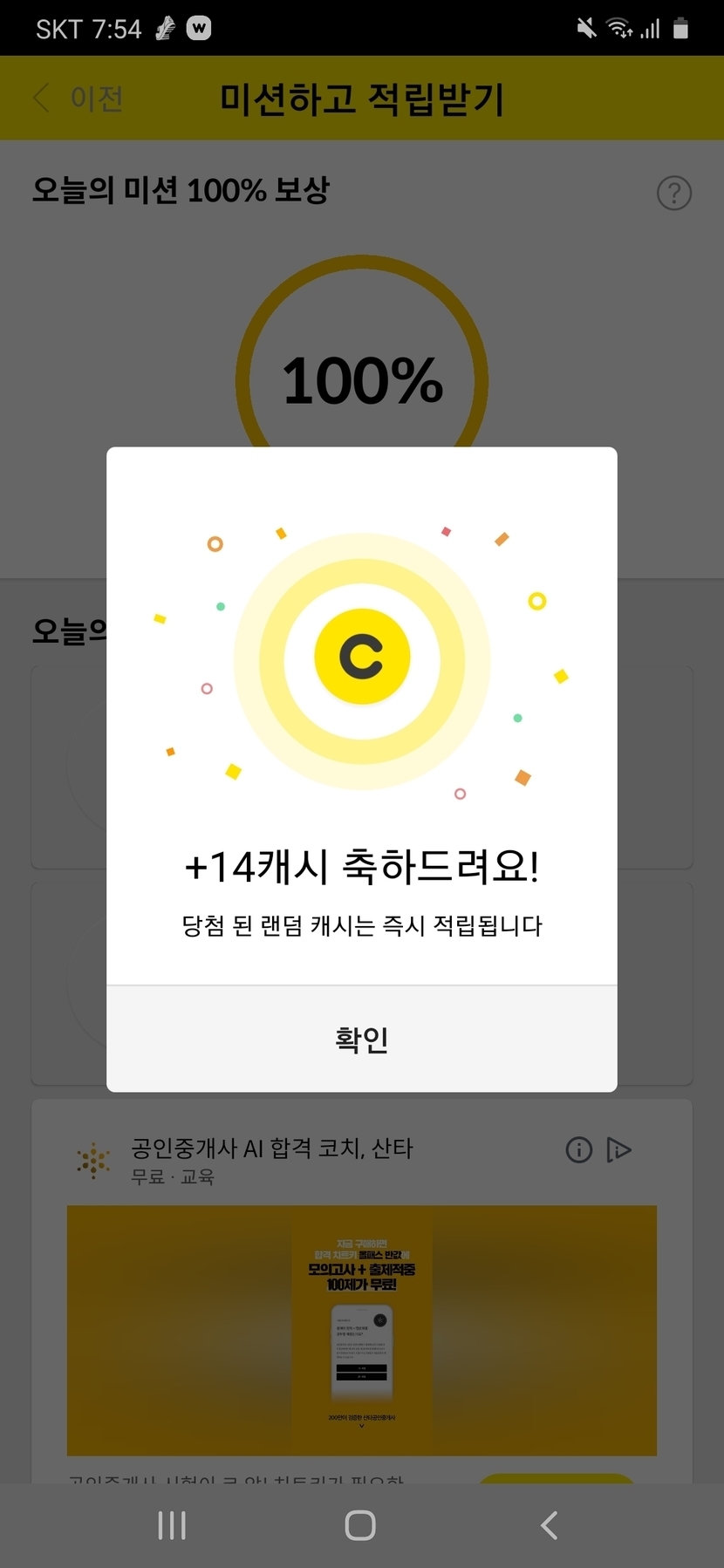 캐시피드,캐시워크 미션 10000보 완료~~😆😆