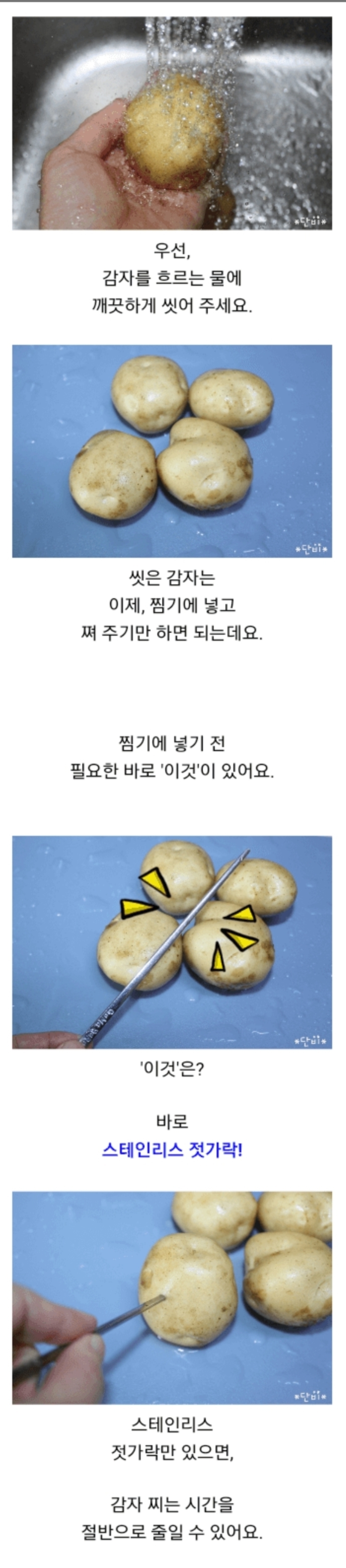감자 찌는 시간 절반으로 줄여주는 초간단 팁!
