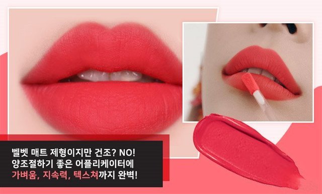 출시되자마자 코덕들의 마음을 사로잡은 매트 타입의 틴트에요. 어뮤즈 특유의 감성적인 컬러감을 담아 매트 틴트임에도 부드럽고 가벼운 텍스처를 자랑하죠. 보송보송하게 마무리되어 마치 포토샵을 한 것처럼 예쁘게 입술을 표현해준답니다.