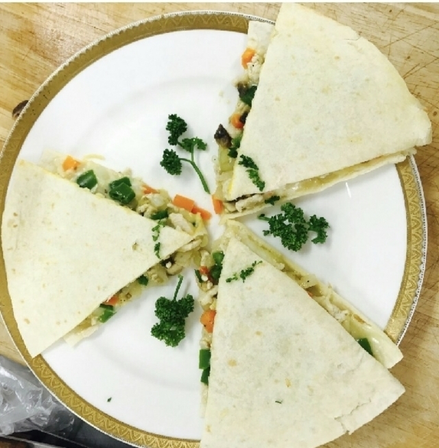 19.11.26 3,931 읽음 학원에서 만들어 본 또띠아 간식? 퀘사디아! goga 구독하기 41 58 콘텐츠의 수익 2,862 완성사진이에요!만드는법 간단히 설명해드릴게용~준비물 : 또띠야2장 닭가슴살 양파 (홍)피망 고추 양송이 소금 후추 모짜렐라치즈 버터닭가슴살을 잘게 자른다모든 야채는 0.5-1cm크기로 준비한다펜을 달군 후 기름을 두르고닭가슴살을 볶다가 양파, 양송이, 피망, 고추넣고 소금과 후추로 간을 맞춘다팬에 버터를 녹이고 또띠아 1장을 올려 반에만 치즈를 올리고 아까 준비해둔 야채들을 펄쳐 얹은 후 그위에 치즈를 얹고 반으로 덮어 반달모양을 만들어 뒤집어 익힌다그러면 완성이에용 ㅎㅎ 간단하죵??아이들도 좋아할것같아요~ 58 0 / 300 입력