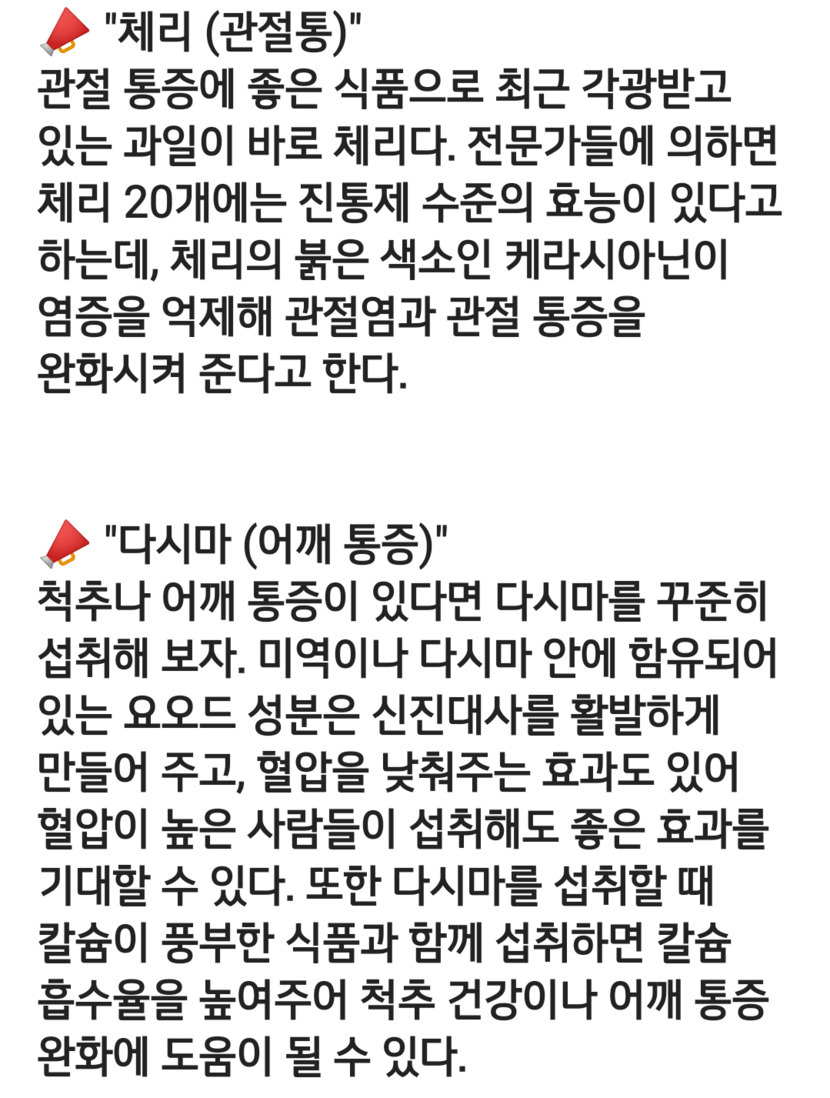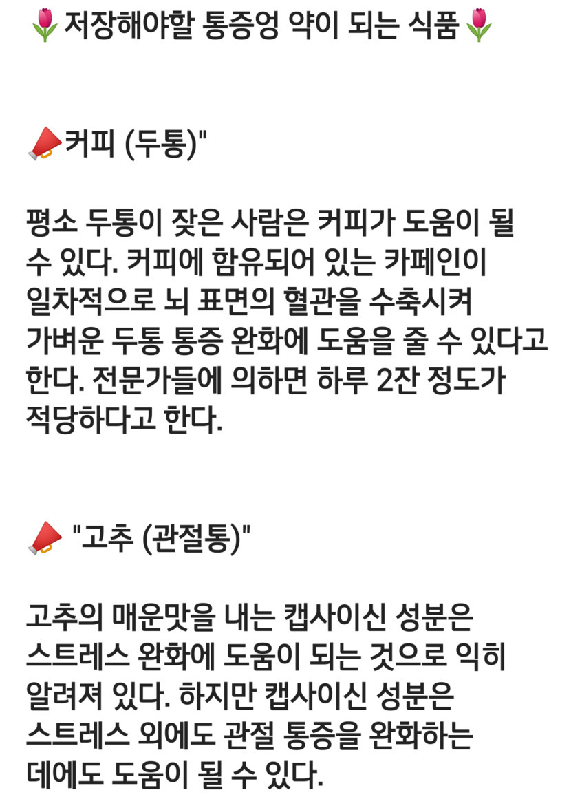통증에 약이 되는 식품