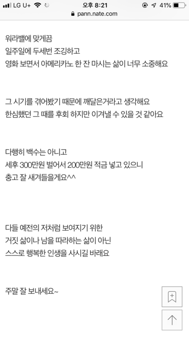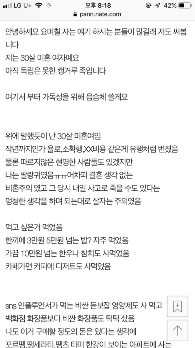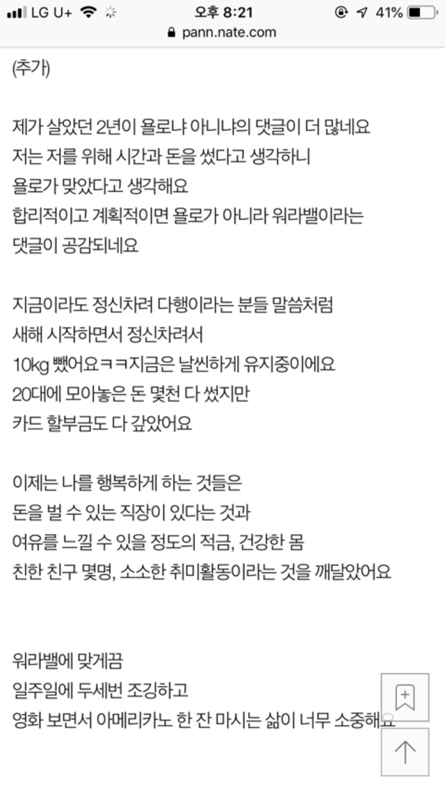 19.08.10 242 읽음 30살인데 욜로 하다 골로 갔어요 보라도립 구독하기 0 3 콘텐츠의 수익 0 한번쯤은 겪을 수 있는 이야기..ㅠㅠ적금 넣고 돈모으고 아끼자...ㅠㅠㅠㅠㅠㅠㅠㅠ 3 0 / 300 입력