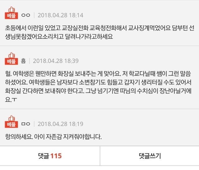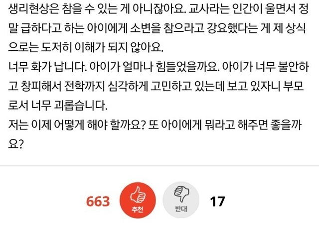 중학생 딸이 학교에서 오줌을 쌌습니다.