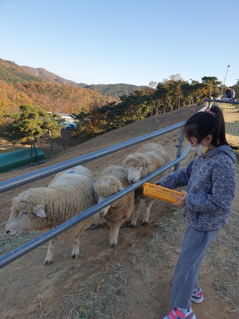 칠곡 양떼목장 먹이주기