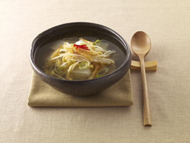 콩나물국을 끊일 때 파를 넣으면 좋다. 파에는 비타민과 칼슘, 철분 등이 풍부해 위와 폐의 기능을 돕는다. 특히 파뿌리에는 알리신이 많이 들어 있어 혈액순환에 도움이 되며, 감기로 인한 두통, 배뇨곤란, 설사, 해열, 발한, 복통에 효과가 있다.