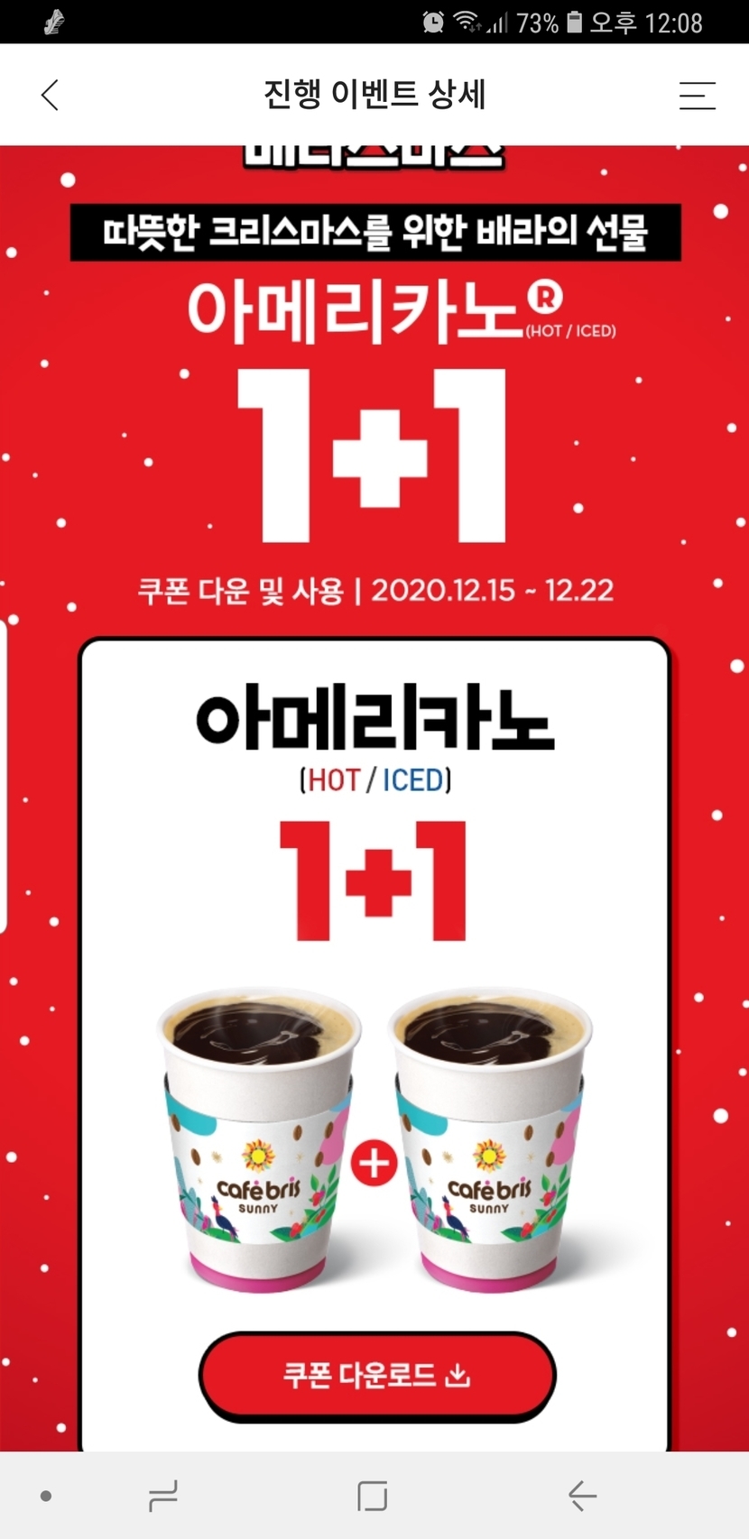 해피포인트앱에서 1+1 아메리카노쿠폰 받으세요