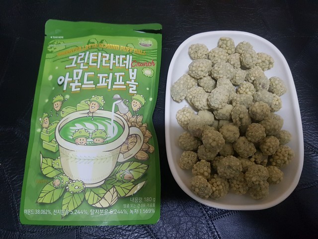 나쁘지는 않으나 손이 제일 안가는 아이에요. 녹차맛나고 과자가 바삭하게 씹혀요