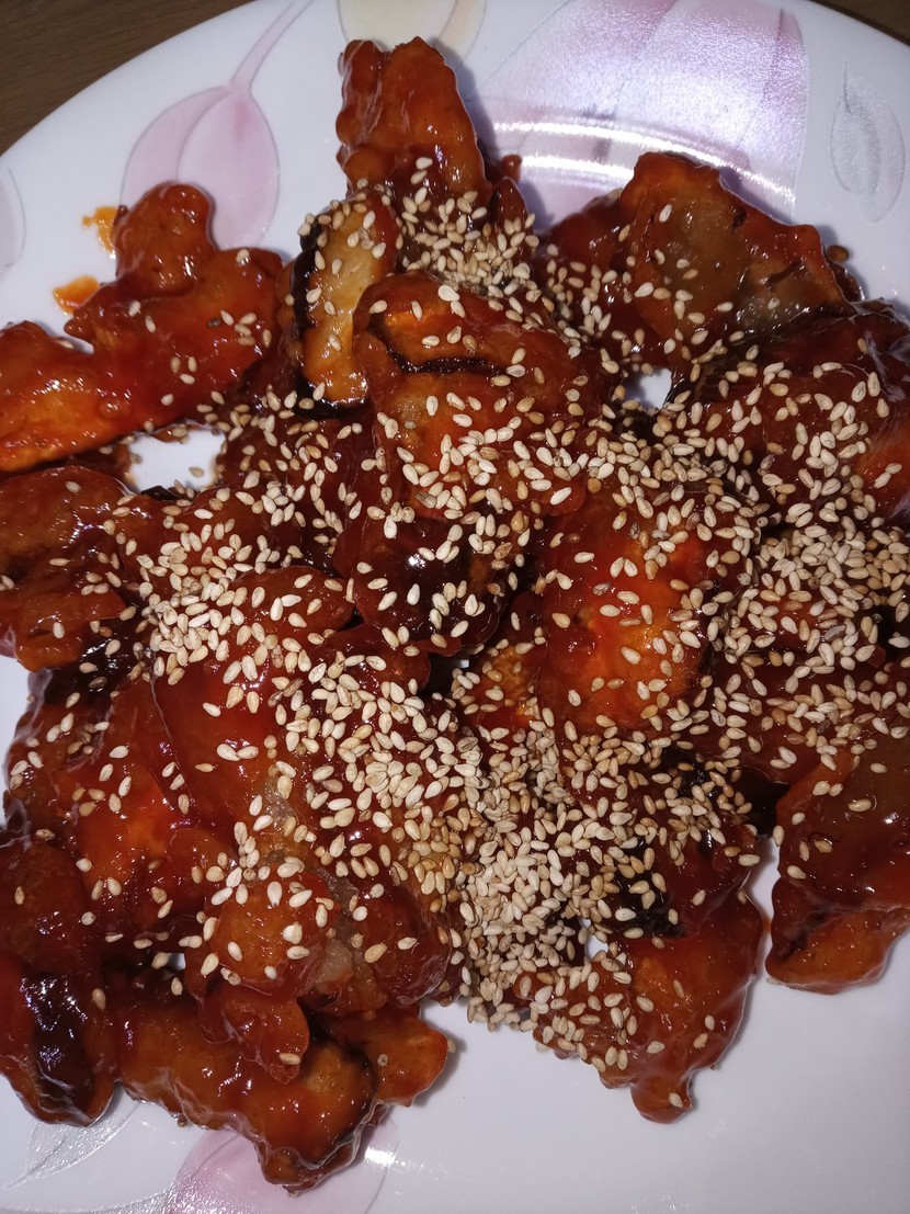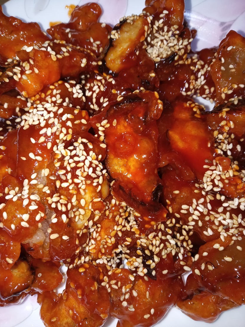 튀김물에 적셔 튀겨줬어요 두세번튀겨