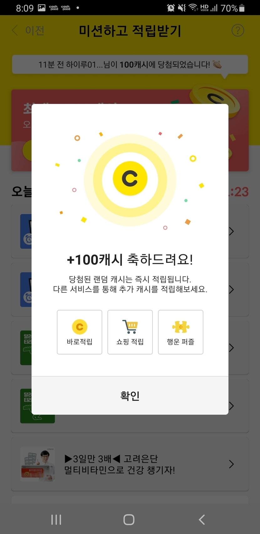 100캐시 받았어요~~
