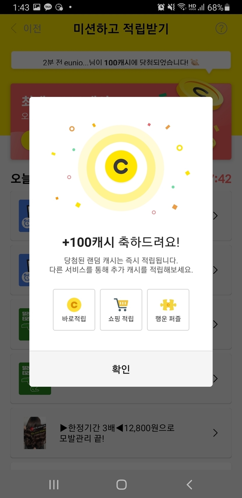 오늘도 100캐시 받았어요~~