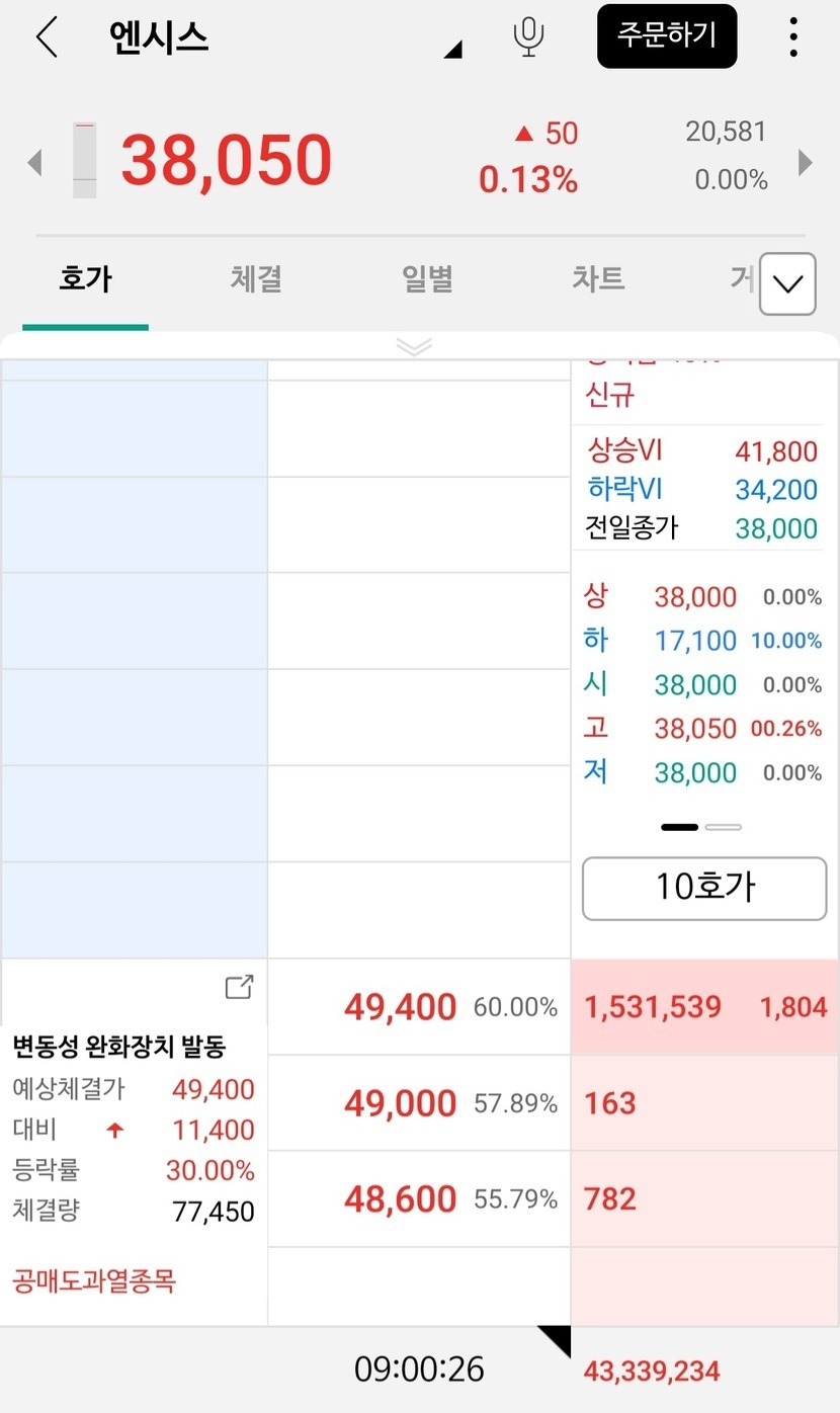 μ΄λμ λ°μ κ°λ μ€ μμλλ° μμ체결 κ°κ²©μ΄ μμ λΉ μ Έμ μμνλ€μγ γ