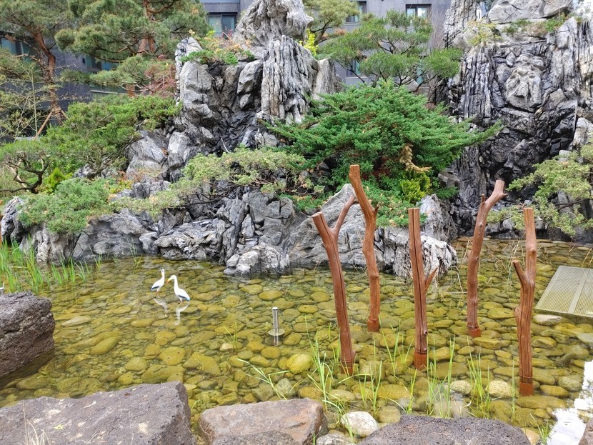 인공호수 안에서 🦢🦩모형이지만 사이좋은 한쌍💕