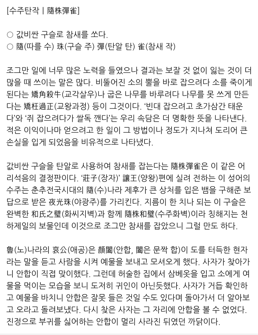 수주탄작("값비싼 구슬로 참새를 쏘다)"