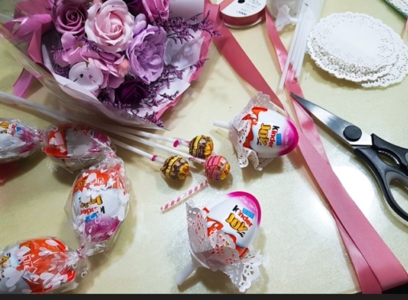 발표회 꽃다발 다이소표 만들기 (킨더조이,막대사탕)
