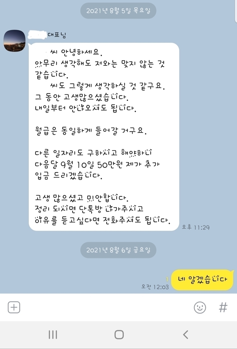 남친이 걱정할까봐 그냥 때려쳤다고만 했는데..