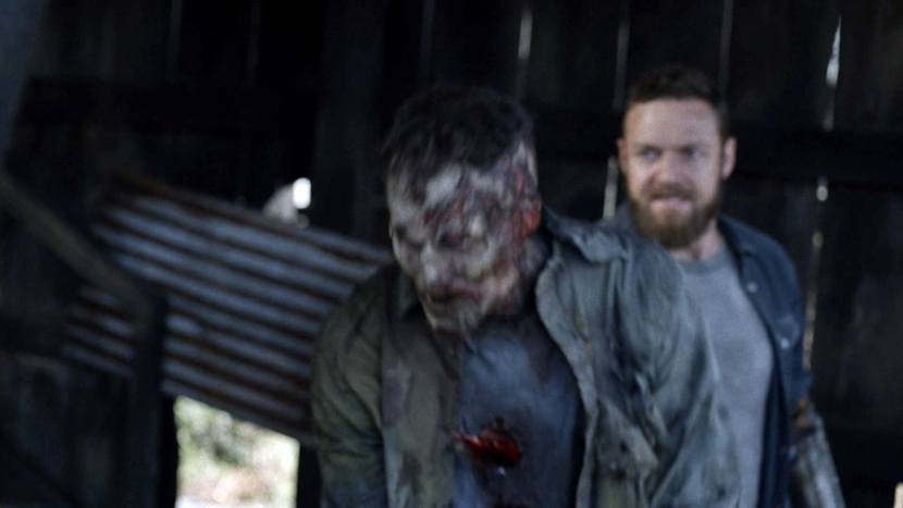 애런은 자신이 죽는 악몽 속에 비명을 지르며 깨어납니다. 꿈이라는 것을 안 순간 안도의 한숨을 내쉬지만, 알렉산드리아를 좀비로부터 지켜주고 있던 방벽이 무너지면서 위협에 처한 것을 알게 됩니다. 한바탕 회오리가 지나간 후 안정을 되찾습니다.