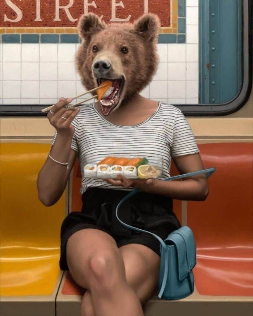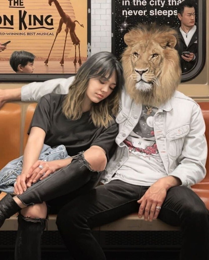 뉴욕 지하철 반인반동물 퍼포먼스라고 합니다.
