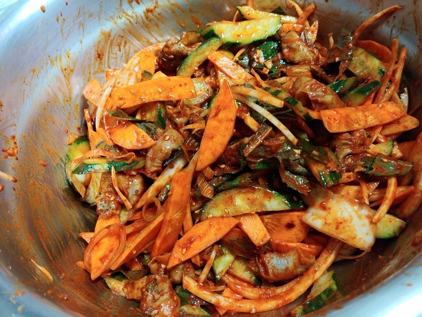 20.02.07 2,994 읽음 맛있는 골뱅이무침 탭탭짱짱 구독하기 24 218 콘텐츠의 수익 423 맛있는 골뱅이무침 재료 : 마늘,고추장,고추가루,식초,매실,골뱅이통조림,참기름,통깨,대파,깻잎,양파,당근,국수마늘,고추장,고추가루,식초,매실,골뱅이통조림국물(2스푼) 함께 쉐킷쉐킷 한뒤골뱅이를 넣고 먼저 버무리고 깻잎,대파,양파,당근,참기름 넣고 다시섞어 줍니다. 마무리로 통깨를 뿌려주고 국수를 삶아서 찬물에 식혀준뒤함게 접시에 담아 놓고 맥주와 맛있게 먹습니다. 218 0 / 300 입력