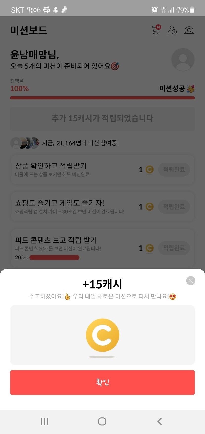 오늘은 15원 당첨됐어요~~좋네요~^^