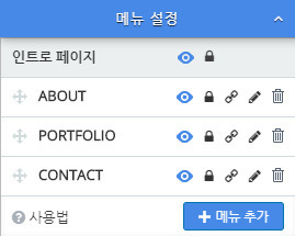그 밑에 about, portfolio, contact는 메뉴이름입니다!