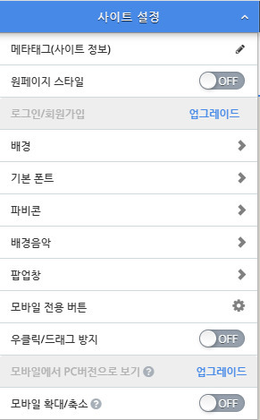 원페이지 스타일 = 만약에 메뉴를 통해서 여러 페이지를 만드셧다면 이것을 1개의 페이지로 단축시킵니다! (밑으로 옮겨진다고생각하시면 편함)