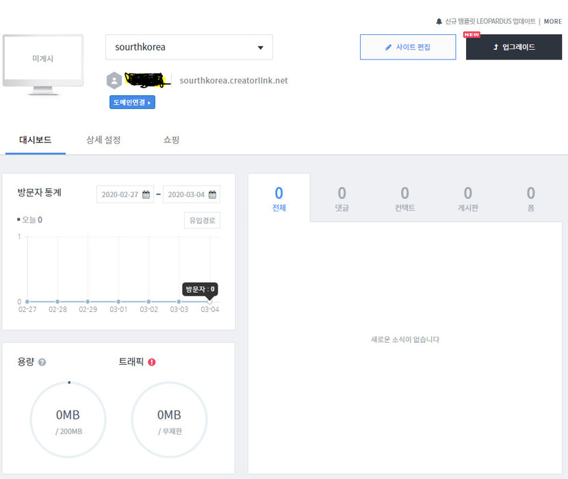 (제가 만든 사이트는 southkorea.creatorlink.net인데 뒤에붙는 creatorlink.net처럼 이사이트의 형식을 알려주는것을 도메인이라고합니다!