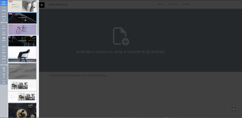 그러면 템플릿을 선택하라고 창이 뜨는데요! 이건 홈페이지의 기본이되는 배경을 뜻하는거에요! 저는 아무거나 1개 골라봣습니다!